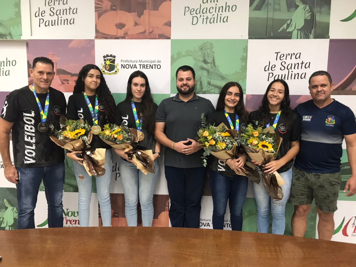 Após a vitória no Campeonato Brasileiro de Seleções (CBS) Sub-17, quatro atletas e o treinador do projeto Voleibol Nova Trento/Tim receberam uma homenagem no gabinete da Prefeitura na manhã de quinta-feira, 24.